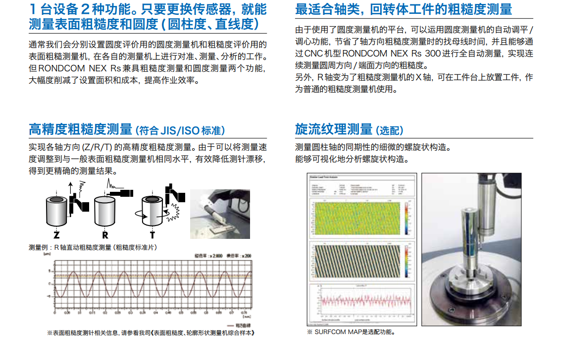 实现圆度和表面粗糙度的高精度测量 实现顶尖的旋转精度0.02 + 3.2 H/10000 μm 对应部品的高精度化