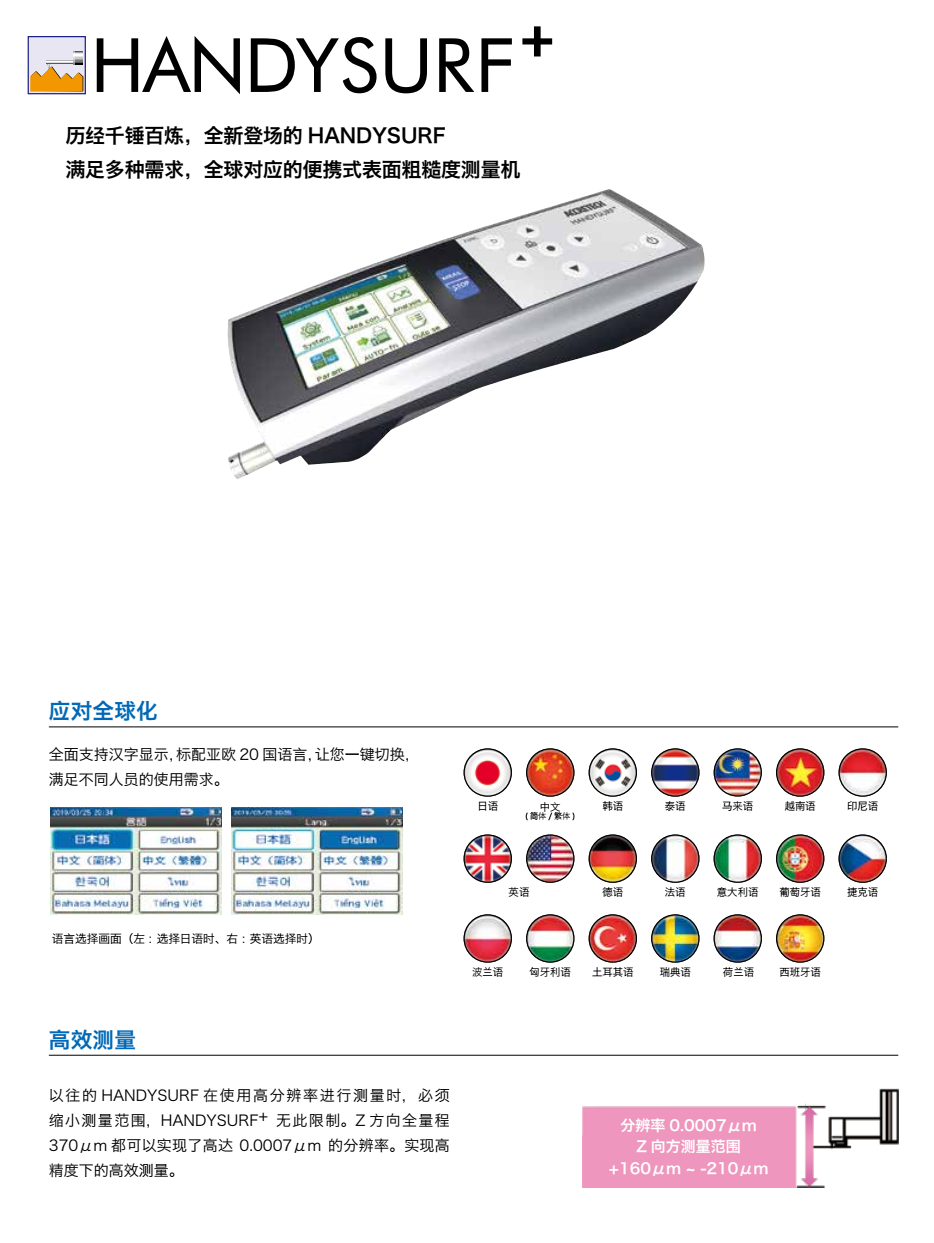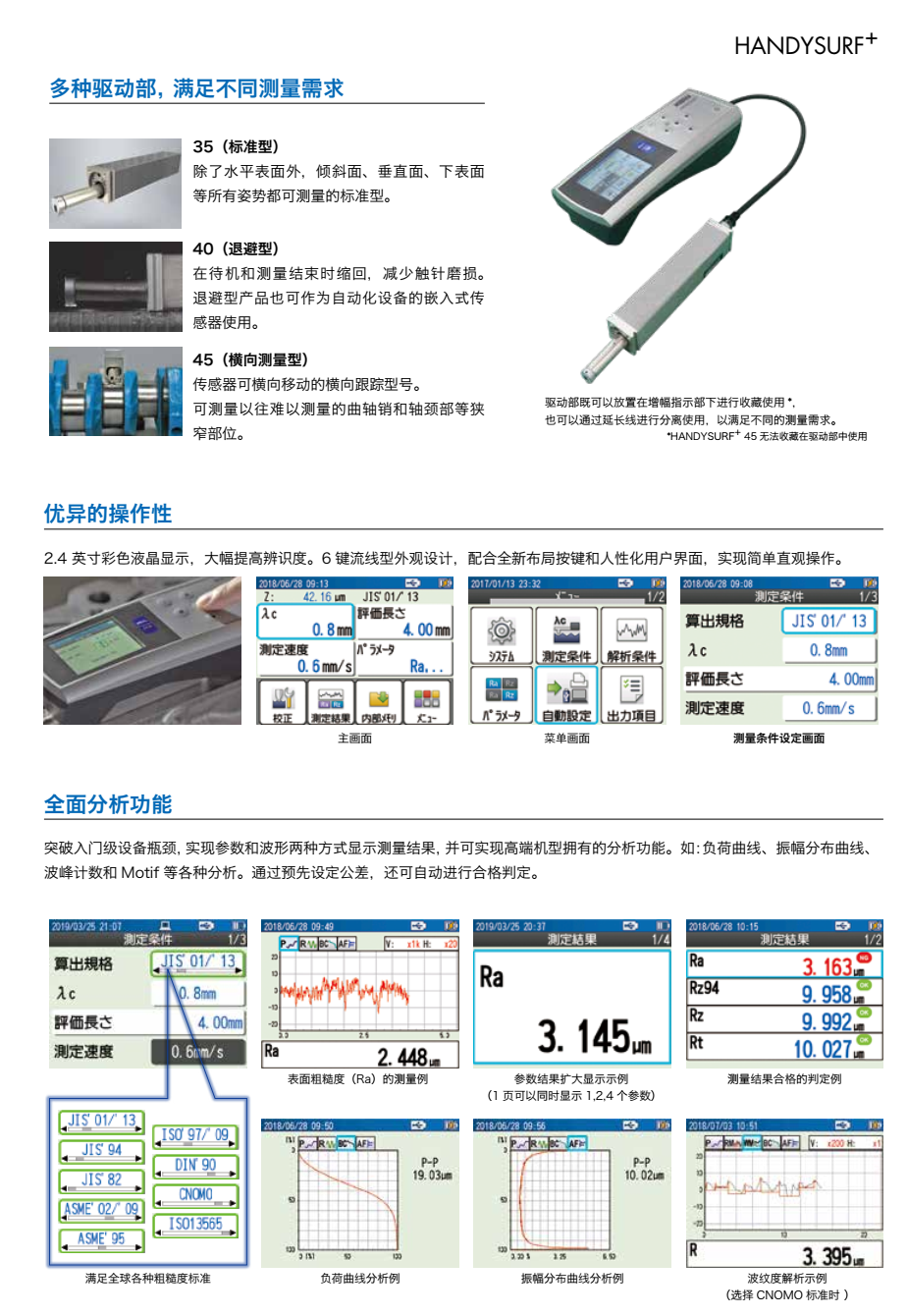 经过全新设计已经脱胎换骨了的HANDYSURF崭新登场。 适应各种需求的全球性便携式表面粗糙度测量机